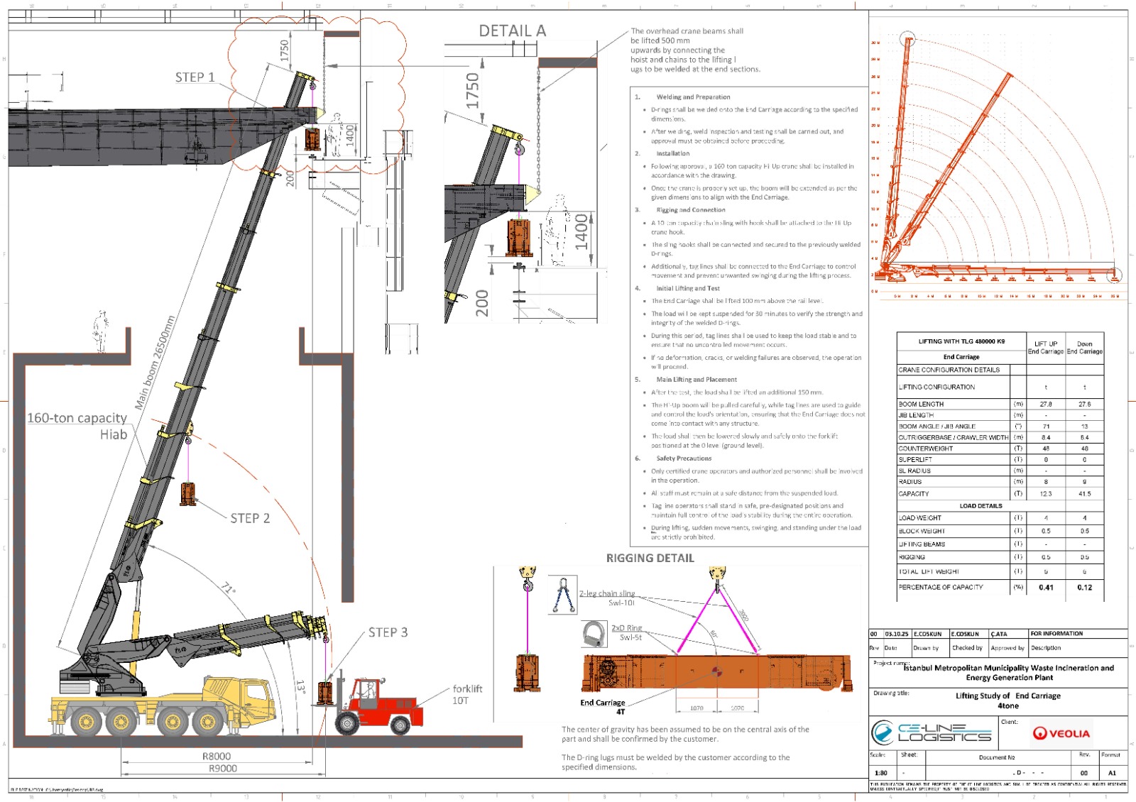 Yaklaşık 30 metre kotunda, dar vinç kurulum alanı ve çatı–boom arasındaki sınırlı açıklık koşullarına rağmen çalışma başarıyla tamamlandı. Operasyon öncesinde titizlikle hazırladığımız iş analizi ve kaldırma planı çizimleri, sürecin güvenli ve sorunsuz ilerlemesine önemli ölçüde katkı sağladı. Tüm risk unsurları, ekipman yerleşimleri ve kaldırma açıları masa başında detaylı şekilde değerlendirilerek en uygun hale getirildi. Sahaya gelindiğinde ise yalnızca bu planın kontrollü bir şekilde uygulanması kaldı ve operasyon planlandığı gibi güvenle sonlandırıldı.